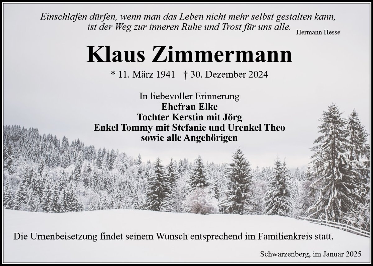 gestorben am 30. Dezember 2024 in Schwarzenberg