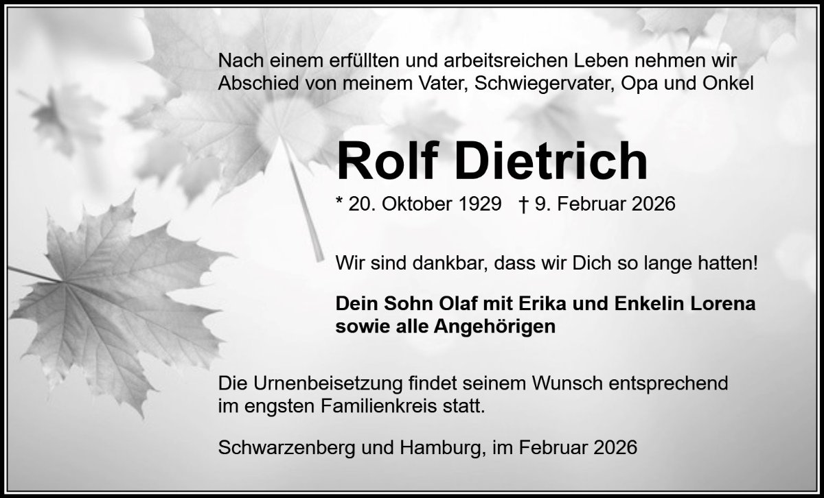 gestorben am 9. Februar 2026 in Schwarzenberg