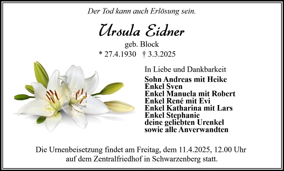 Ursula Eidnergestorben am 3. März 2025